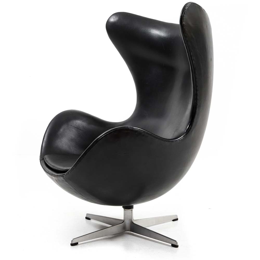 Jacobsen Egg nojatuoli 1960-luvulta. Kääntyvä. Musta alkuperäinen nahka.