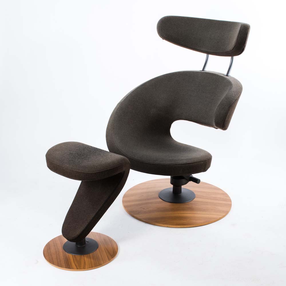 valmistama 1960-luvun Puck nojatuoli. Säädettävä puurunko. Uusi musta
